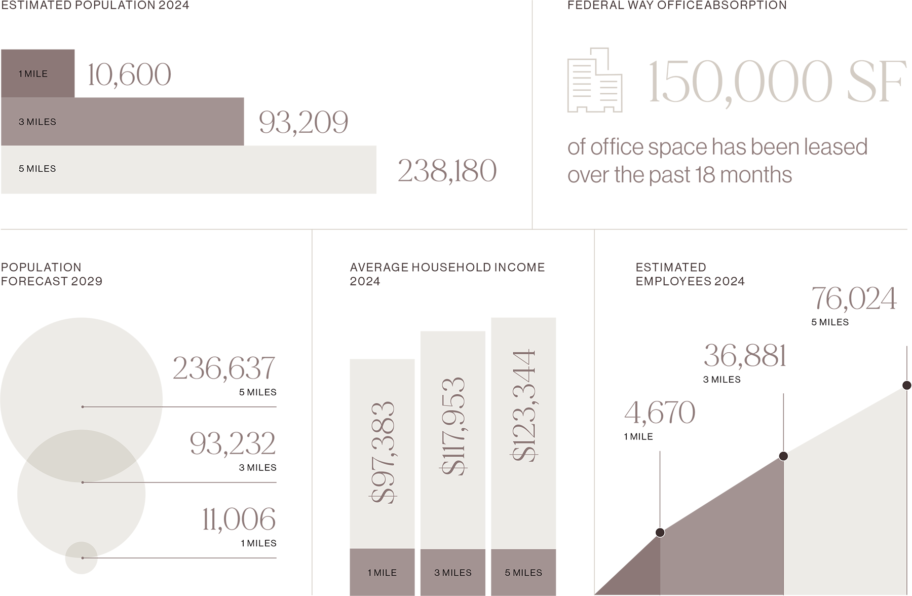 I-5 Tech is poised to attract top tier quality tenants with significant square footage requirements. This bodes well for the building as the submarket sees a tremendous amount of activity in the larger square footage ranges. Federal way is the strongest performing South Puget Sound Submarket. Regional and national tenants consider Federal Way a perfect location for a company headquarters or satellite office.